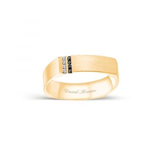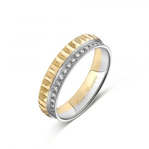 Alliance moderne sublimée par un jeu de diamants noirs et blancs. Une création Marc Brams, parmi nos 2 220 références d’alliances, fabriquée dans notre atelier Parisien.