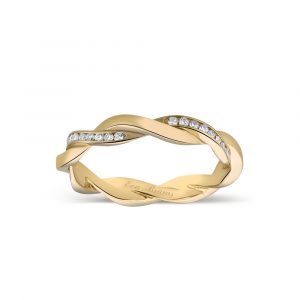 Une alliance tressée sertie de diamants, à la fois créative et symbolique, qui mêle modernité et douceur intemporelle.