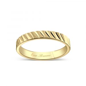 Une bague élégante à la finition facettée, inspirée par l'architecture moderne. Disponible en Or 18K.