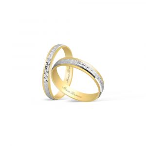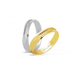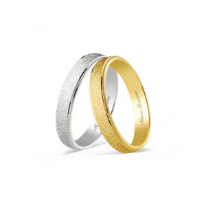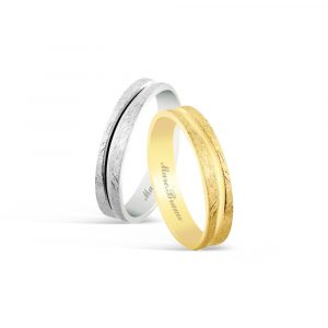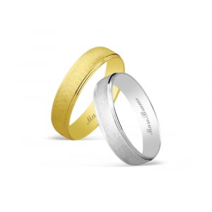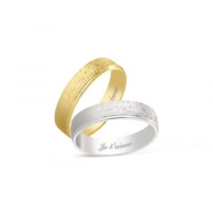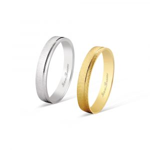 Alliance "Amour Tracé Givré" , sublimée par une texture givrée unique et un tracé délicat, disponible en or jaune 18 k ou en ou blanc 18 k.
