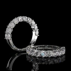 Alliance sertie de diamants taille ovale, disponible en Or Jaune, Or Blanc, Or Rose ou Platine.
