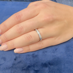 L'Alliance Sertie Rail se distingue par l'élégance de ses Diamants parfaitement alignés, semblant suspendus dans un écrin de lumière. Disponible en petit modèle, moyen modèle et grand modèle, cette alliance peut être réalisée en demi-tour ou en tour complet, comme illustré sur les photos.