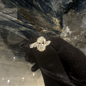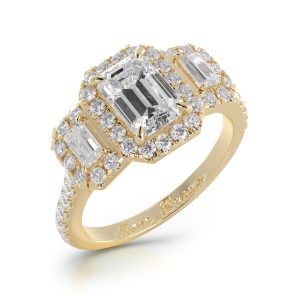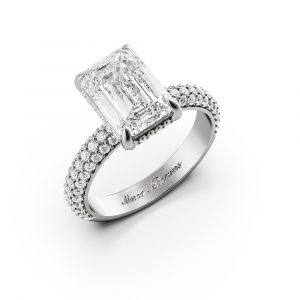 Toubiane , une bague lumineuse où un diamant taille émeraude trône sur un pavage étincelant