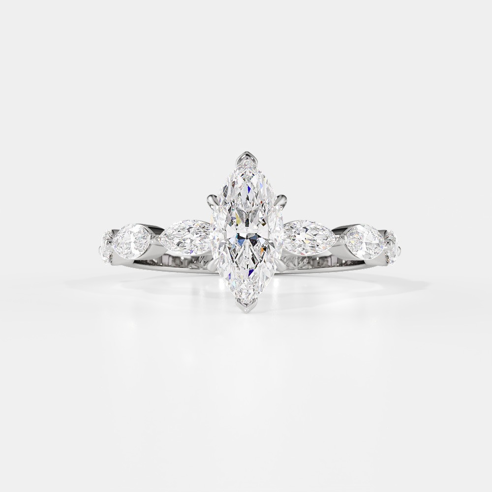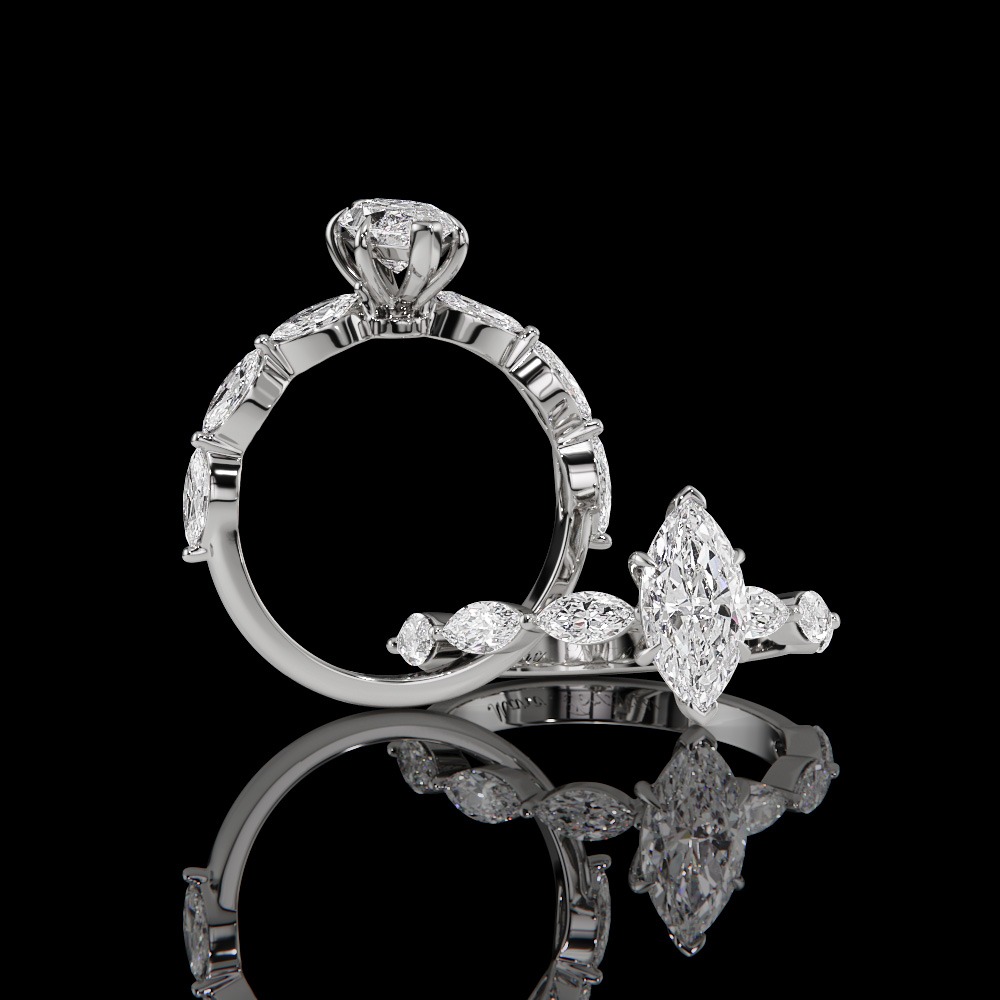 Nathen à Florence est une création Marc Brams pensée comme une déclaration de style. En son centre, une Taille Marquise s’impose naturellement, étirant la lumière et dessinant une silhouette racée, presque architecturale. De chaque côté, des marquises serties délicatement accompagnent le mouvement, créant une continuité fluide et audacieuse. L’ensemble joue sur les lignes, les reflets et les perspectives, pour un solitaire créatif à la présence affirmée, à la fois moderne et intemporel. Une bague de caractère, conçue pour celles et ceux qui recherchent une création singulière, élégante et profondément expressive. Retrouvez cette création parmi plus de modèles uniques dans notre showroom, chacun conçu pour symboliser vos plus beaux engagements.