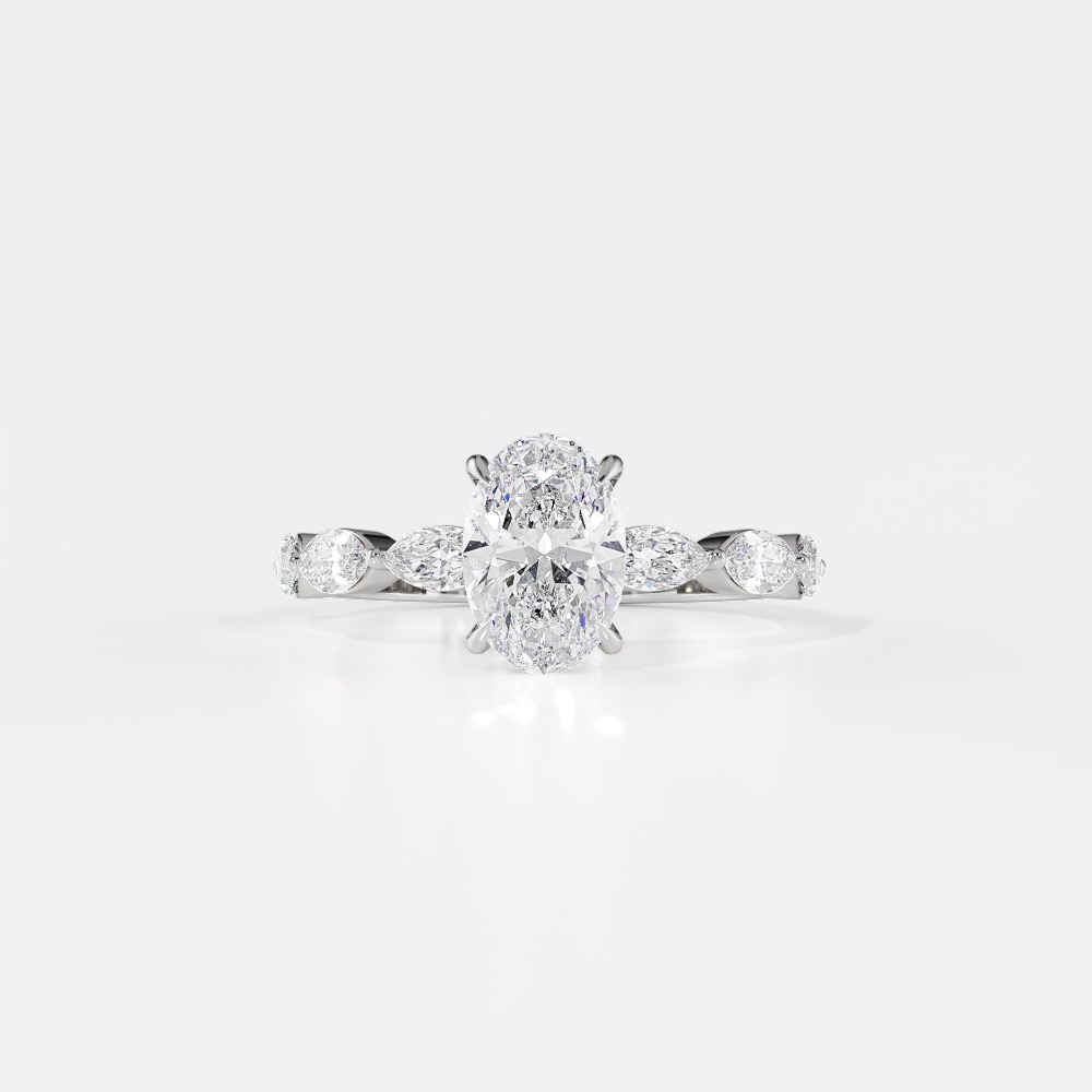 Nathen à Florence en Taille Ovale offre un équilibre parfait entre douceur et originalité. Les marquises latérales soulignent le centre avec finesse et harmonie.