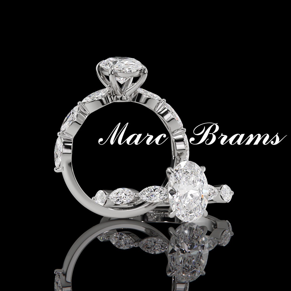 Avec cette déclinaison, Nathen à Florence révèle une interprétation plus douce de son esprit créatif. La Taille Ovale centrale capte la lumière avec générosité, apportant rondeur visuelle et élégance naturelle à la monture. Les marquises positionnées de part et d’autre viennent structurer l’ensemble, apportant rythme et sophistication sans jamais rompre l’harmonie. Chaque détail est pensé pour sublimer la pierre centrale tout en affirmant une identité forte, propre à la Maison Marc Brams. Un solitaire raffiné, lumineux et contemporain, destiné à traverser le temps avec grâce. Retrouvez cette création parmi plus de modèles uniques dans notre showroom, chacun conçu pour symboliser vos plus beaux engagements.