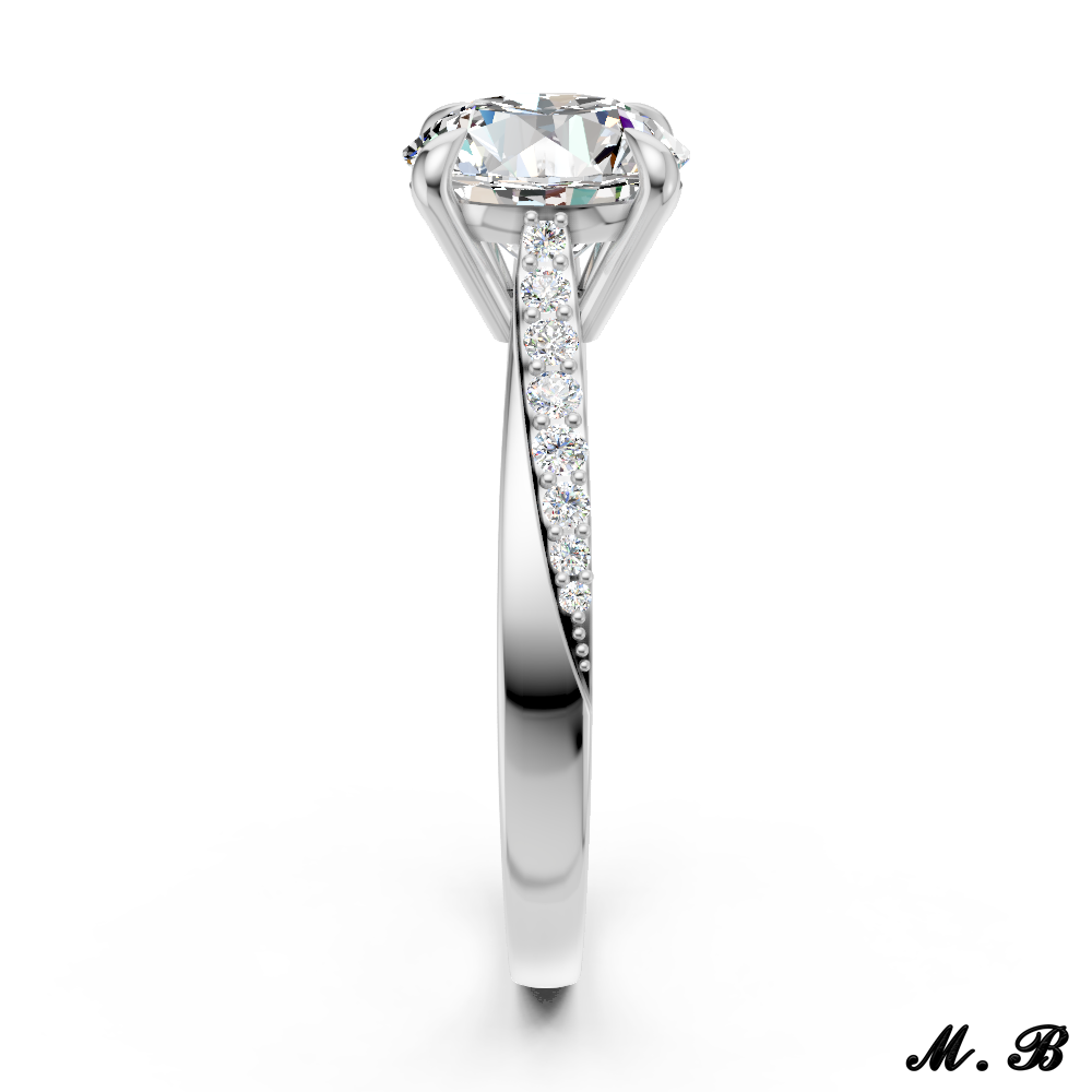 La Bague Osark est une création élégante, pensée pour incarner la grâce et l’équilibre parfait des proportions. Son Diamant Blanc, taillé avec précision, est mis en valeur par un serti aigle à quatre griffes, apportant maintien, finesse et légèreté au design. Le corps de bague, délicatement pavé de diamants, révèle un serti raffiné qui capte la lumière avec subtilité.