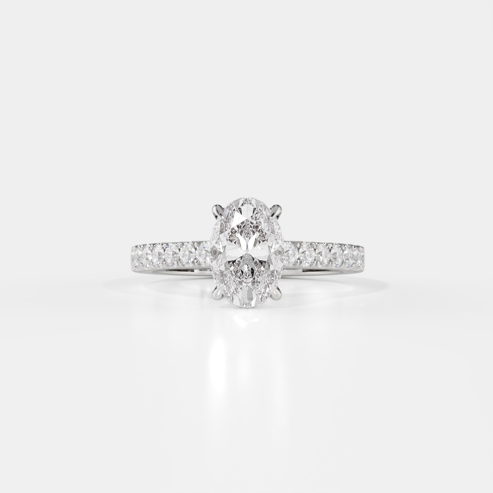 L’Éclat Secret incarne la douceur et la perfection d’un éclat continu. En son centre, un Diamant Taille Ovale, serti de 4 griffes fines, capte la lumière sous chaque angle et l’enveloppe d’un éclat fluide et infini. L’anneau pavé de Diamants prolonge cette brillance avec une harmonie naturelle, dessinant une ligne lumineuse qui épouse la peau.