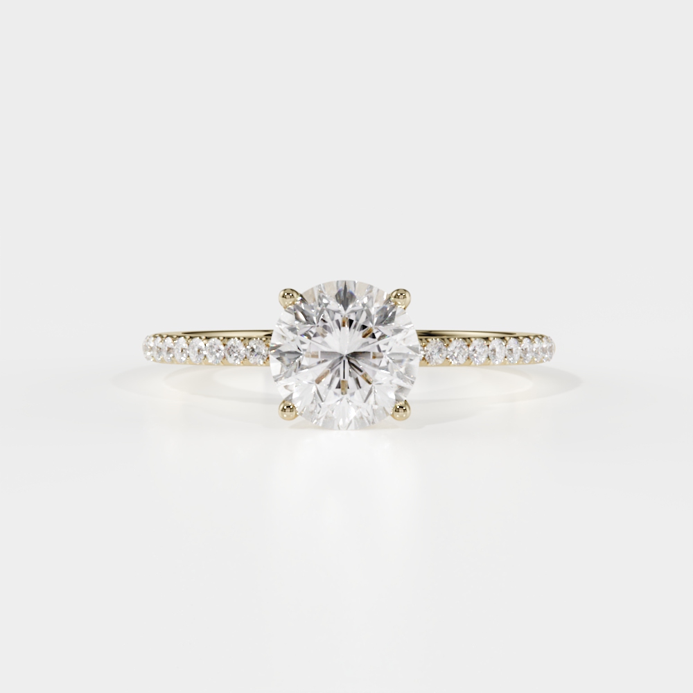 1580 € À partir de 0,50 Carats pour le Diamant central, accompagnée d’un pavage de Diamants sur l’anneau pour un poids de 0,21 Carats. Poids total : 0,71 Carats . Avec un Diamant Naturel de couleur G/H et une pureté SI1 . Coupe du Diamant Excellente / Very Good Fluorescence conseillée Medium / Strong Diamant Naturel certifié par l’un des trois laboratoires internationaux : GIA, IGI ou HRD. Monté en Or Jaune, Blanc ou Rose 18 k, ainsi qu’en Platine 950 .