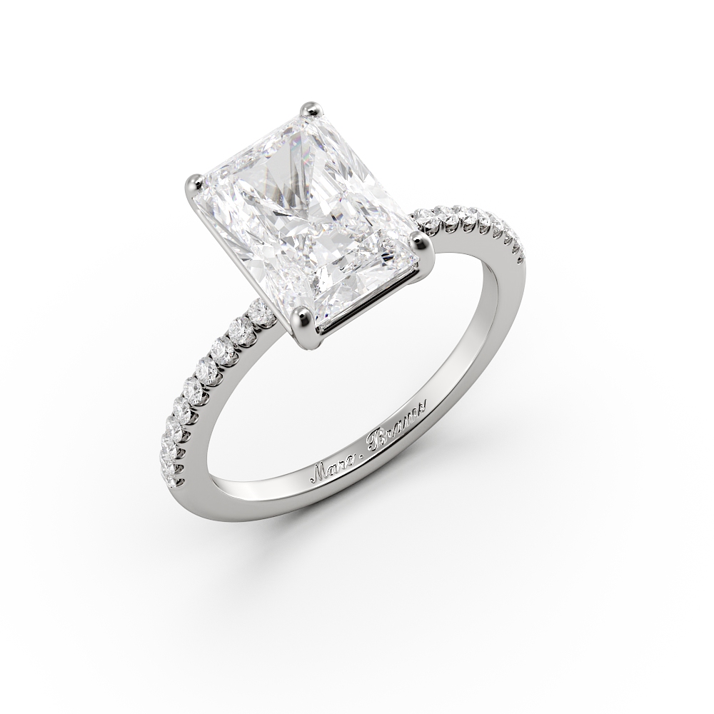 Un solitaire accompagné sublimé par un Diamant Taille Radiant, à l’éclat intense et à la présence affirmée. Une création Marc Brams qui allie caractère, modernité et élégance intemporelle.