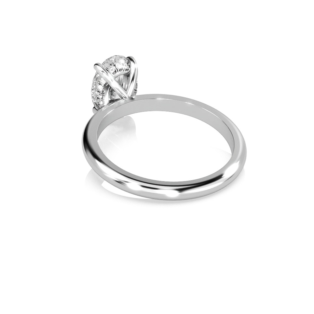 Un solitaire raffiné et discret, sublimé par un Diamant central Taille Ovale et des diamants secrets délicatement dissimulés sous la pierre. Une création élégante et intemporelle signée Marc Brams.