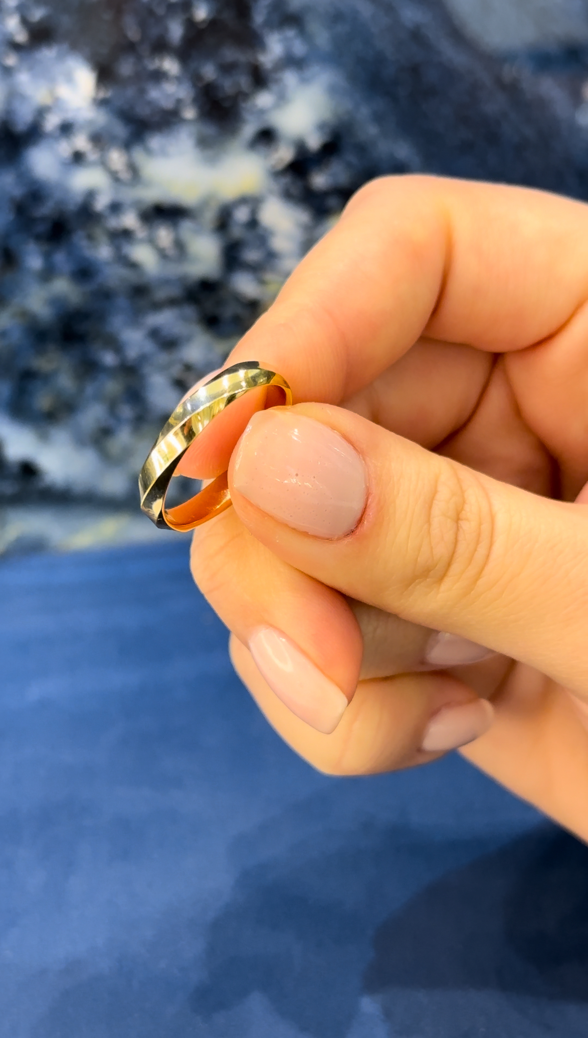 Une bague en Or 18 K au design épuré et moderne, mettant en valeur une forme géométrique unique et une finition polie brillante.