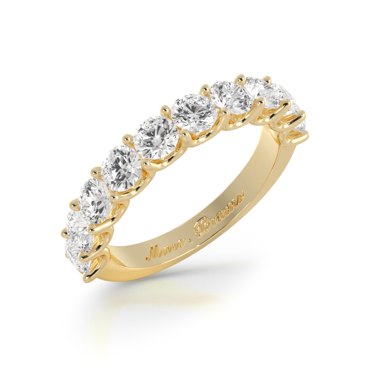Cette alliance tour complet se distingue par son ajourage raffiné, laissant la lumière circuler librement sous chaque pierre. Une structure légère et lumineuse qui sublime l’éclat des diamants tout en offrant un confort exceptionnel.