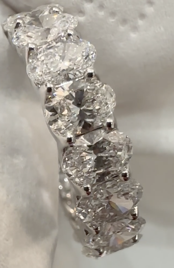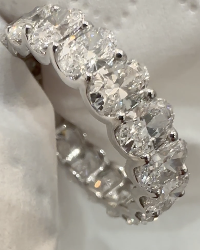 Alliance sertie de diamants taille ovale, disponible en Or Jaune, Or Blanc, Or Rose ou Platine.
