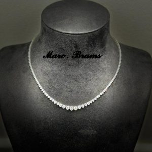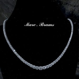 Marc Brams signe une création lumineuse et sculpturale avec ce collier dégradé monté en serti trois griffes. Chaque diamant, taillé avec exigence, compose une ligne fluide qui sublime la courbe du cou. En son centre, un diamant éclatant capte la lumière avec intensité. La pierre centrale peut être choisie selon vos envies, et chaque version révèle un équilibre parfait entre pureté et présence.
